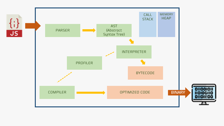자바스크립트 파일을 작성해서 컴퓨터에게 전달할 때, 컴퓨터는 도대체 어떻게 우리가 작성한 자바스크립트 코드를 해석해서 의도한 결과물을 출력해줄까? 프로그래밍을 공부하는 사람이라면 누구나 한 번쯤은 궁금증을 가질만한 주제이다. 이 내용에 대해서 공부해보자.